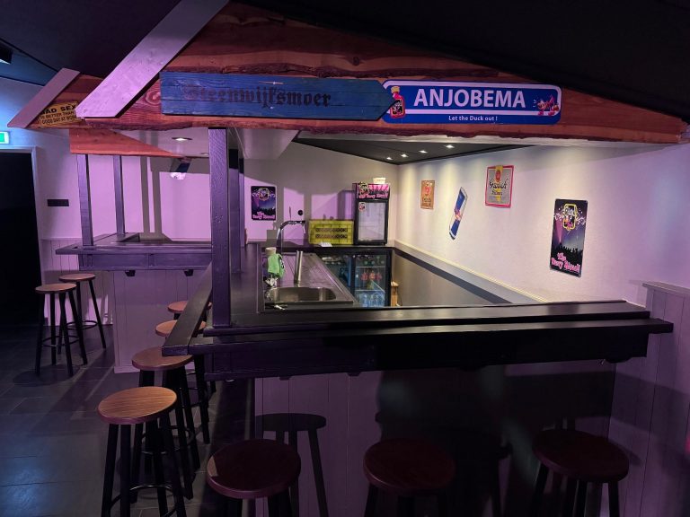 Anjobema is voorzien een geluidsinstallatie met meerdere discolampen, een bar met koelingen, bartafels & krukken, toilet, relaxhoek en garderobe.